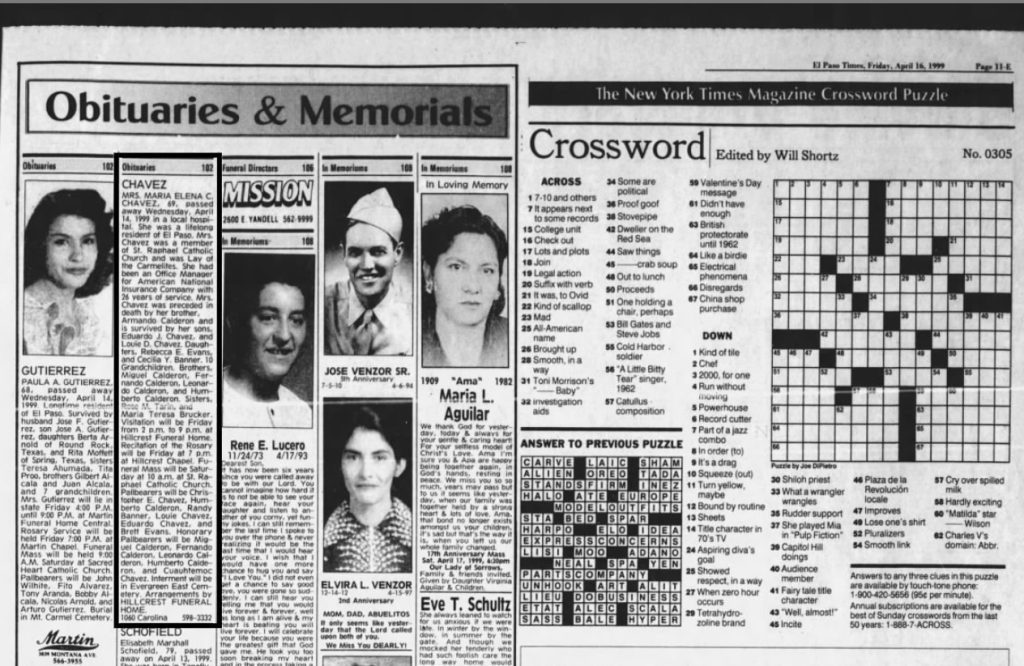 Evans himself says his mom was born in the U.S. — not Mexico. Her wedding announcement states she indeed went to Eastwood High School. The obituary of Evans’ grandmother states that she was a “lifelong resident of El Paso,” suggesting that El Paso was where she raised Evans’ mother. Property records and photos suggest that Evans’ mother had a middle-class upbringing.
