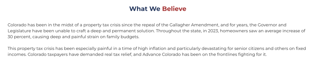 With this well-funded and opaque network of organizations, Fields and Advance Colorado’s financial backers have been able to drive successful political narratives in Colorado. In recent years, those narratives have primarily revolved around property taxes.