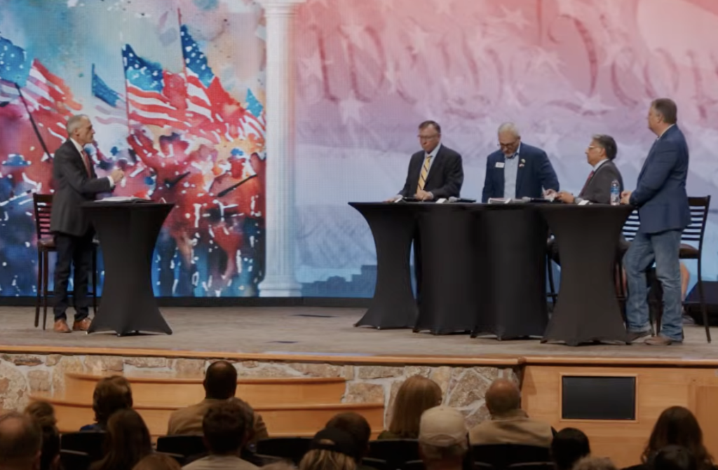 Held at the Truth & Liberty Coalition’s annual conference, the forum occurred under the pall of the recent shooting of conservative agitator Charlie Kirk. In addition to being a long-time ally of Truth & Liberty and Charis Bible College – both of which are run by evangelist Andrew Wommack – Kirk was scheduled to be the conference’s keynote speaker. It is difficult to imagine that the shock of Kirk’s murder did not contribute to the dark tone of the candidate forum, but it is equally clear that each candidate on stage arrived at his own troubling positions even before that event.
