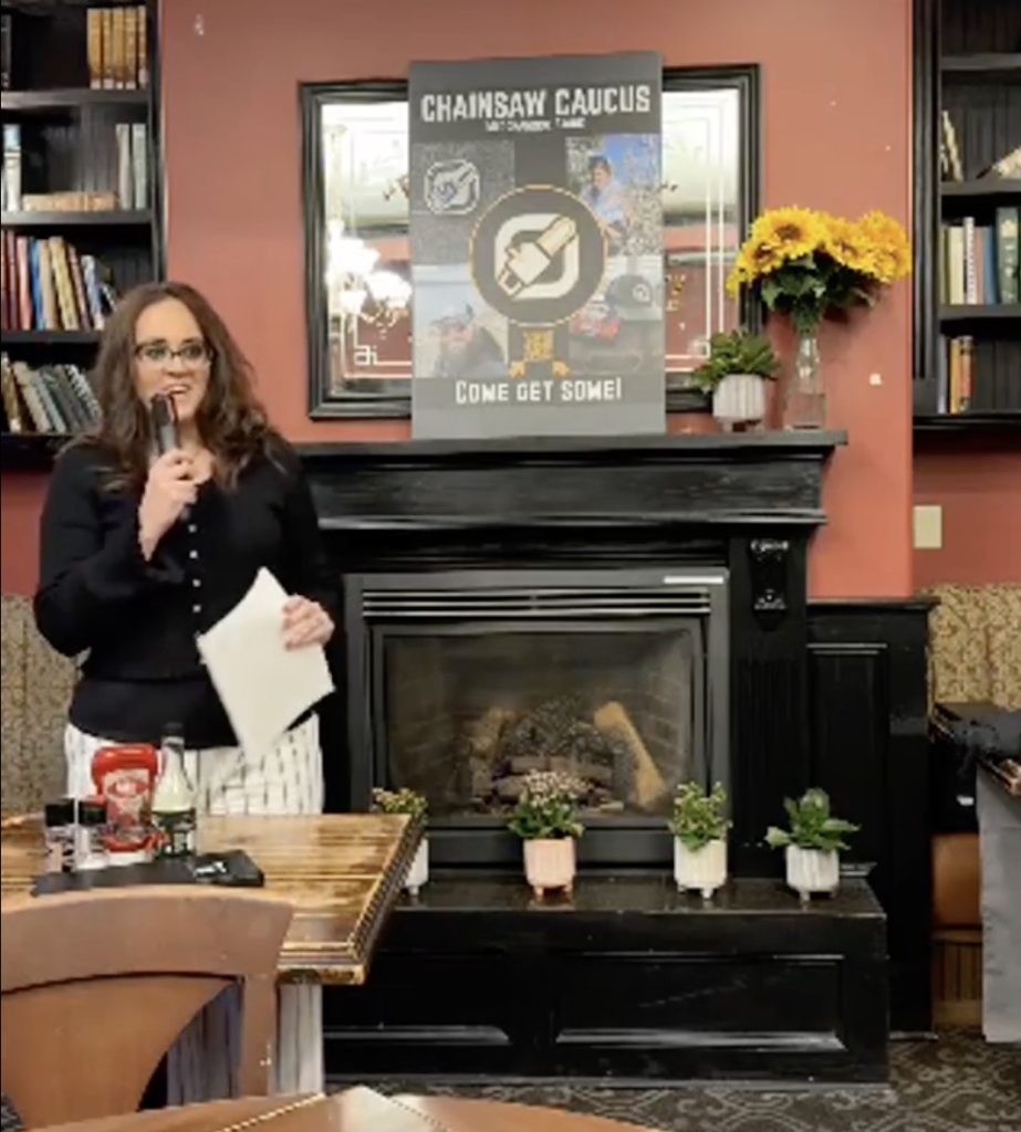 The recently launched Chainsaw Caucus, created last November, calls itself a statewide political action committee founded by Libertarian Party leaders. It hosts Republican legislators and conservative activists for strategy sessions, aiming to “create a dynamic platform for radical Liberty candidates” and “cut through the political divide and build coalitions” while “vastly limiting government spending and overreach.”