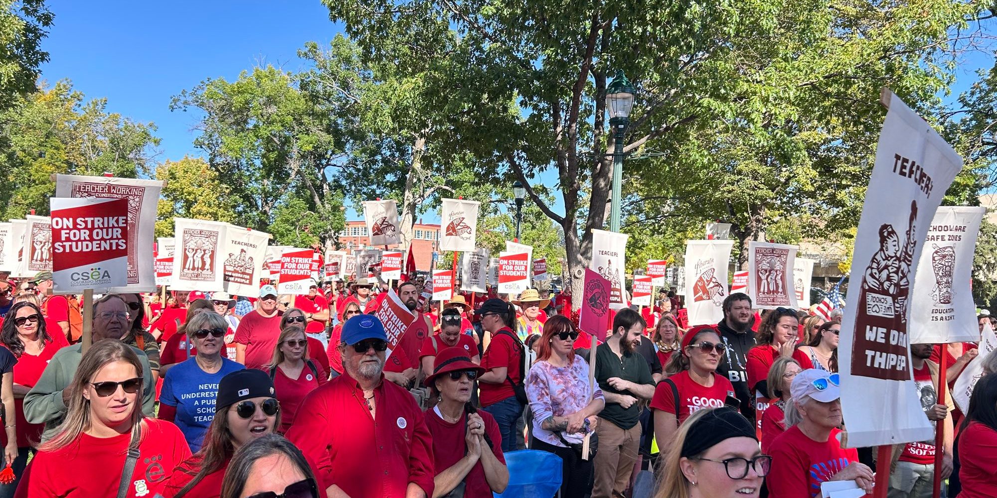 Teachers in Colorado Springs School District 11 took part in a one-day strike yesterday, picketing at 34 schools in the city’s third-largest school district and ending with a rally in Acacia Park. The strike comes in response to last year’s decision by the majority-conservative board not to renew the district’s longstanding contract with the teachers union, the Colorado Springs Education Association (CSEA), and in response to recent decisions by the board, including adoption of policies targeting transgender students and the decision to spend $500,000 on an outside marketing consultant.