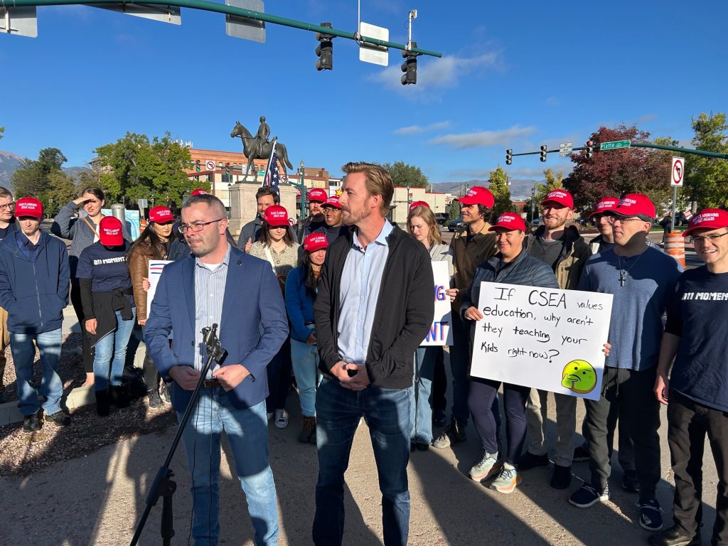 Jason Dudash, the Oregon-based West Coast Director of the Freedom Foundation, noted that some of the picketers weren’t local. “I’d also encourage you to go across the street and ask these people on the picket line where they’re from, because most of them are not from Colorado Springs,” he said. “CSEA had to bus people in from around the state to be at the picket line this morning. And we know that because most teachers are still in the classrooms. They’re happy with this new arrangement, not being any longer holding to the union.”