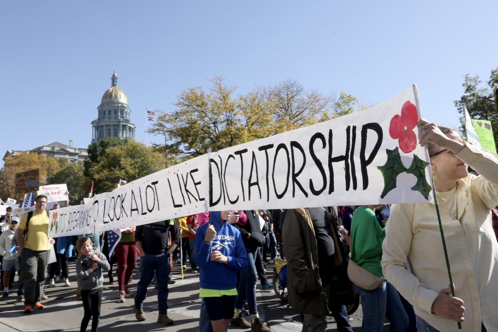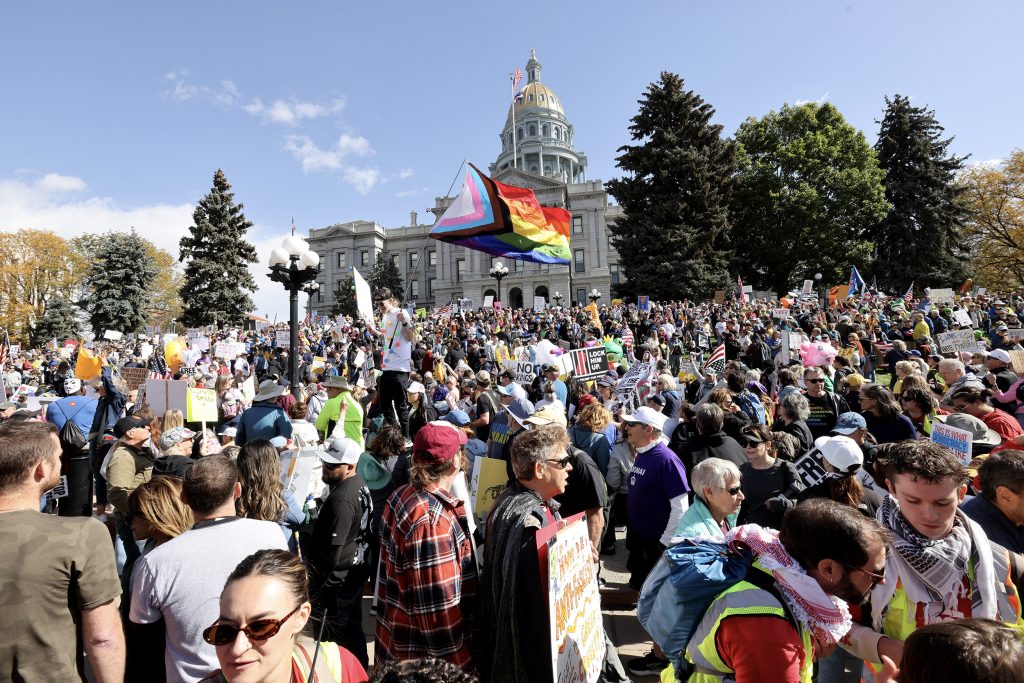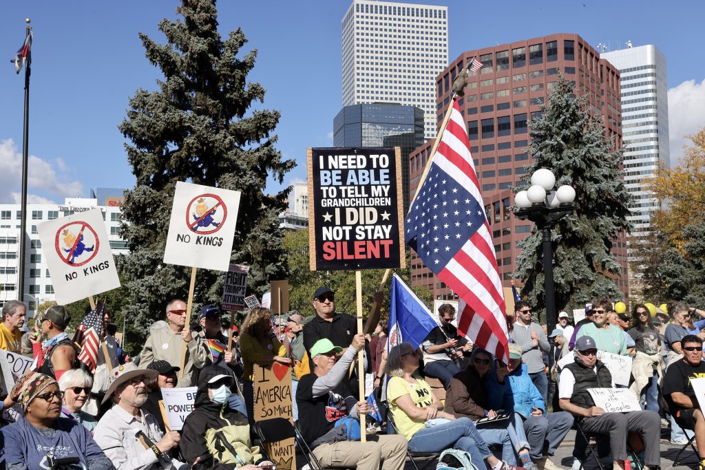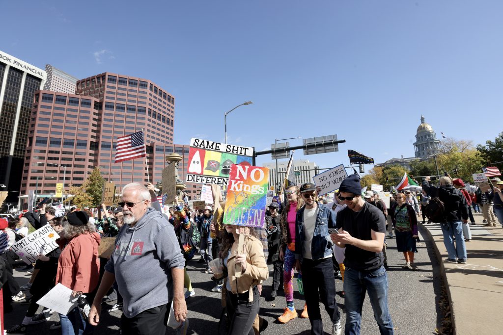 News PHOTOS: No Kings Rally in Denver by Beth Schneider posted on October 20, 2025 Tens of thousands rallied at the Colorado Capitol before marching through downtown on Saturday. The protest was one of more than 50 “No Kings” rallies across the state. All photos by Beth Schneider. See more of her photography at her website. Beth Schneider