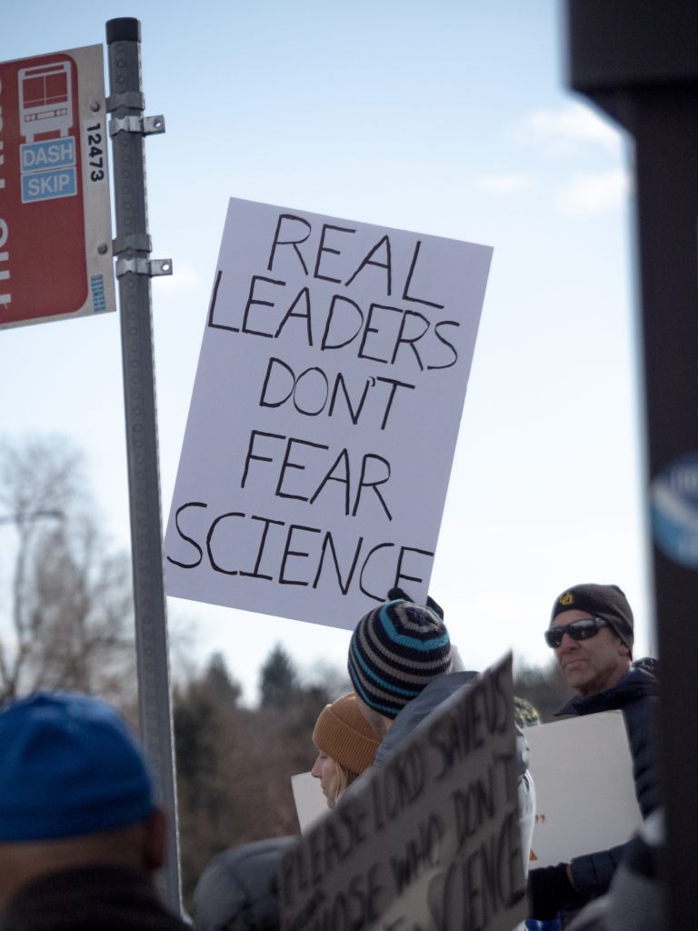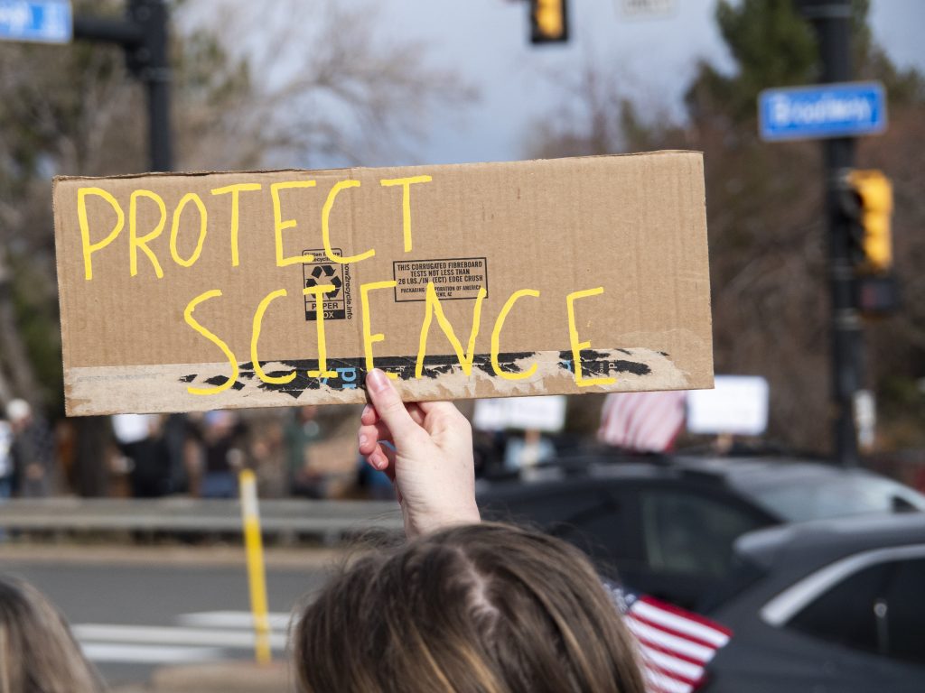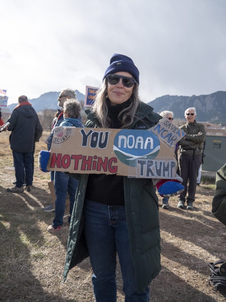 “This is exactly what we wanted to happen, and I’m so proud of Boulder. Everybody’s out here, and they are out here to say, ‘No, you can’t destroy this lynchpin of science and research,’” said Christine Cowles, one of the event’s organizers and a member of Forever Indivisible Boulder. “It’s very heartening to see all of the town out here saying science matters.”