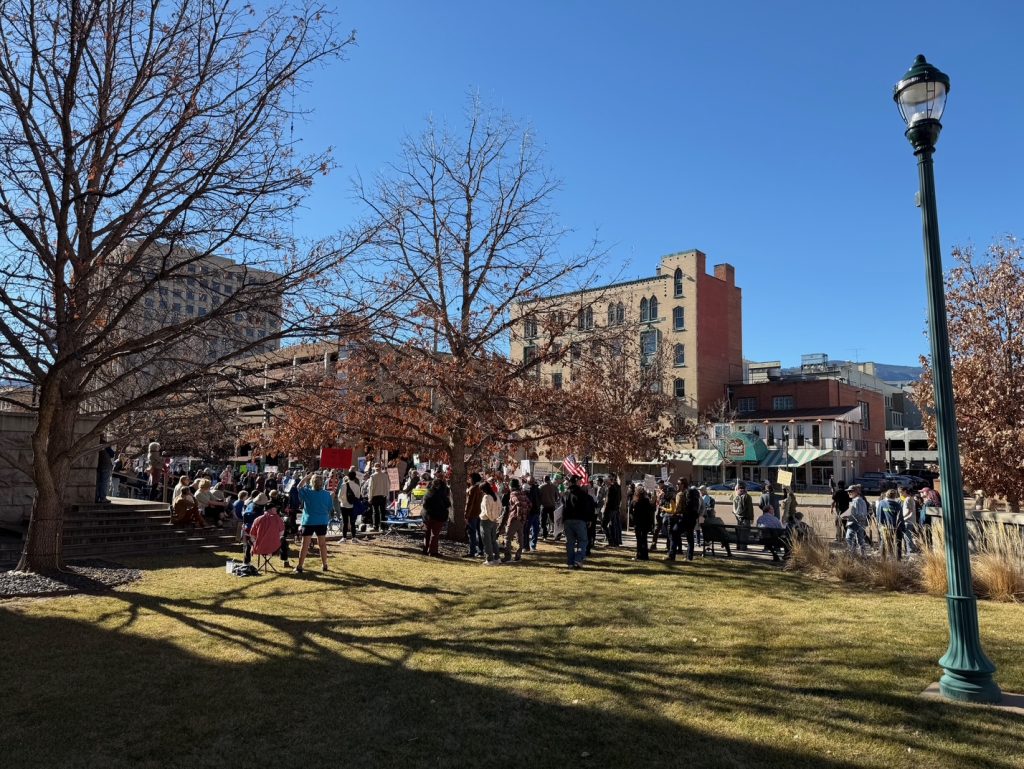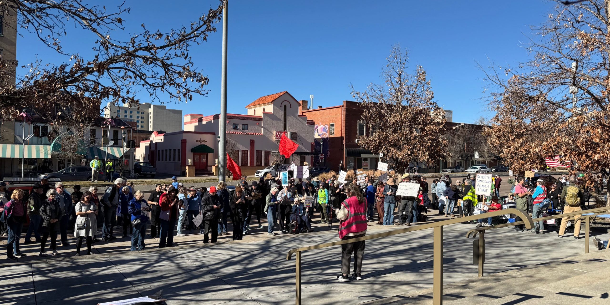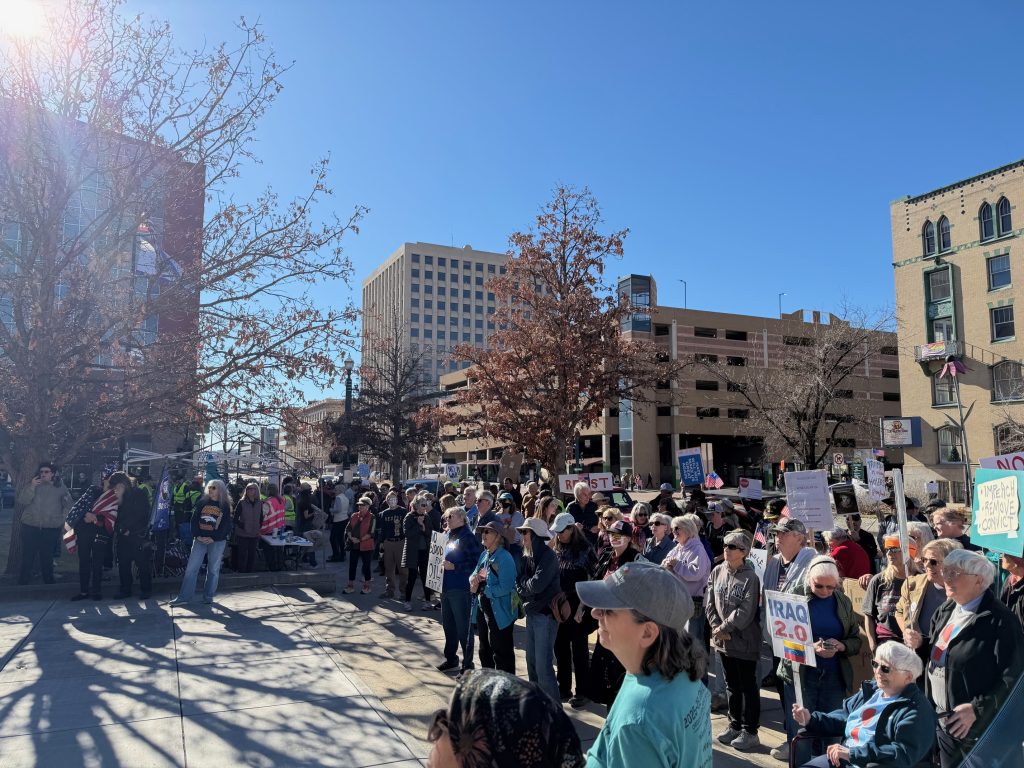 Approximately 200 people gathered at the Colorado Springs City Hall Sunday to protest President Donald Trump’s military actions against Venezuelan President Nicolás Maduro, who was captured during a raid in Caracas on Saturday and faces charges in the U.S. related to drug trafficking. The event was organized by the local chapter of 50501, which has organized previous protests for a variety of progressive causes since Trump took office. Sunday’s protest was part of a national effort by 50501 activists, which saw similar “Hands Off Venezuela” protests in New York, Washington D.C., and other cities.