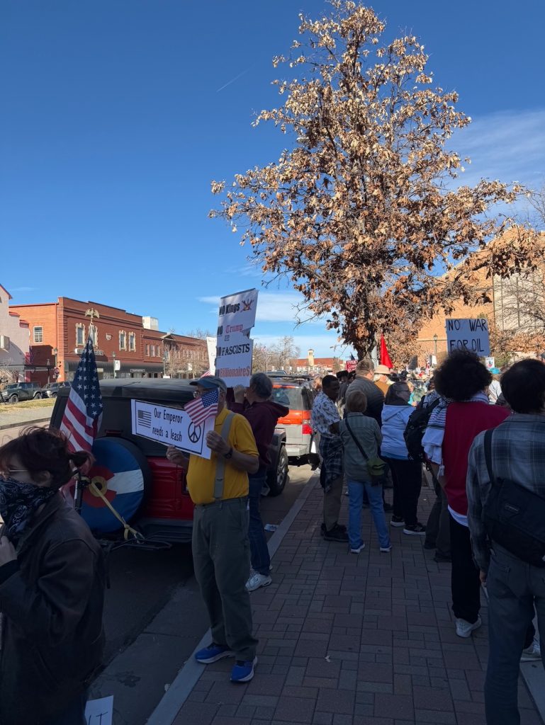 Colorado Springs residents carried signs opposing Trump and calling for an end to foreign intervention in Venezuela. Speakers at the roughly two-hour rally issued calls to free Maduro, release the Epstein files, and for military members to resist unlawful orders. Despite the outcry from progressive activists, elected officials have expressed support for regime change in Venezuela while questioning Trump’s authority to do so.
