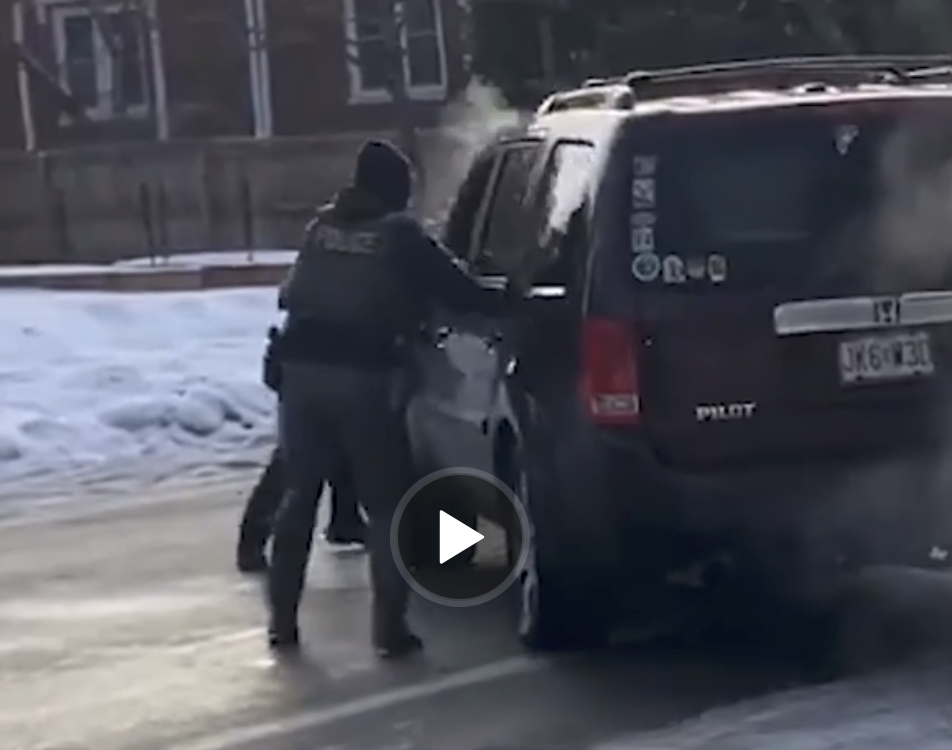 Shots two and three are even more obviously not in “self-defense.” As shown in the slow motion video and the screen shot below, the car has moved forward and the ICE agent is alongside the vehicle when he stretches out his arm and shoots Renee Good in the head. He fires at point-blank range, through the driver’s side window.