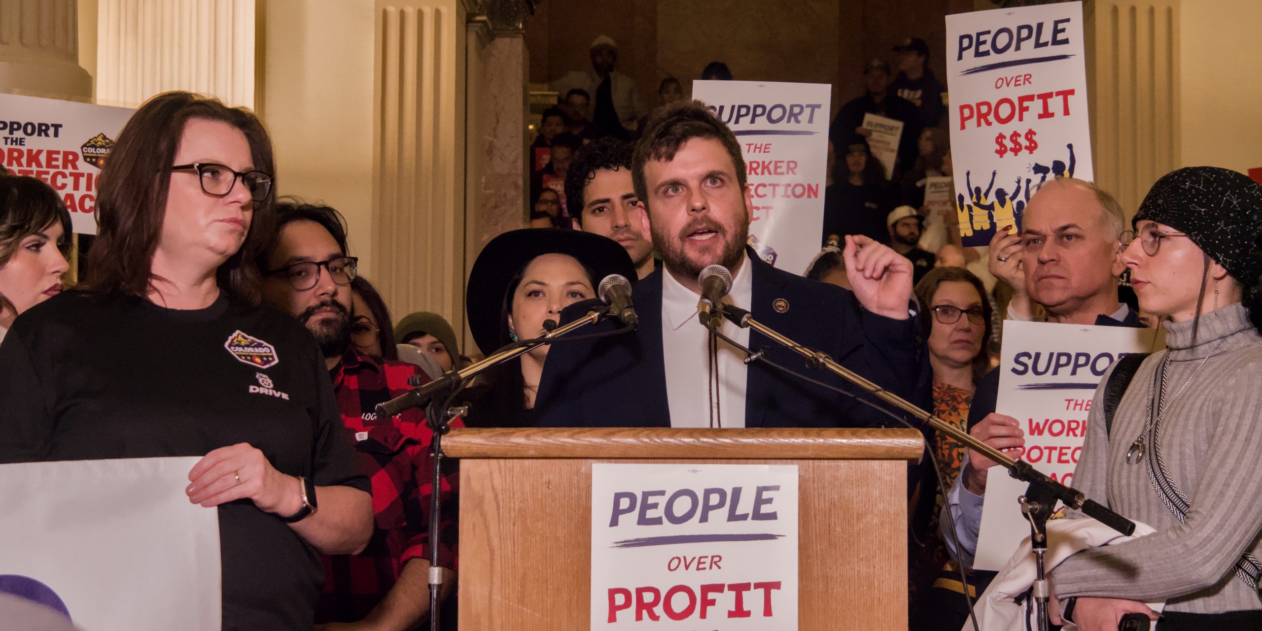 “To say that one election is good, but two elections are somehow better, is just flat-out Orwellian and wrong. That second election does not protect workers — it gives corporate ownership more time to delay, intimidate, and divide,” said Sen. Julie Gonzalez (D-Denver) during the rally. “Colorado’s requirement that workers have to hold a second election before employers will bargain in good faith is not only wrong, it is undemocratic.”