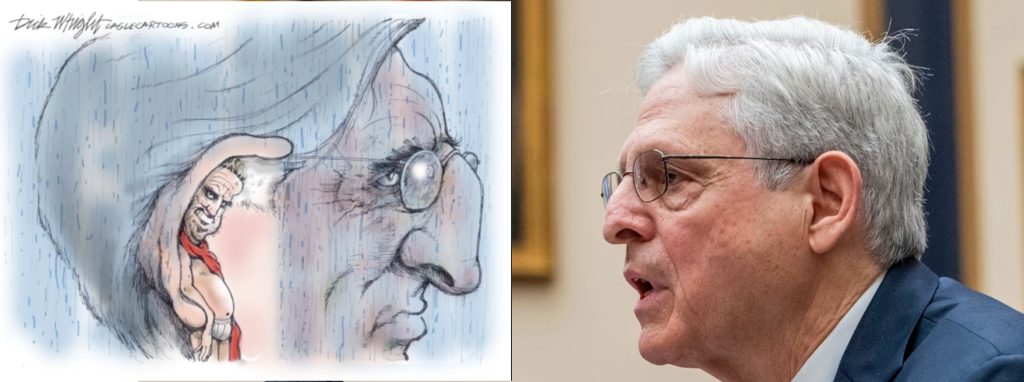 “I was dumbstruck by the Dick Wright syndicated editorial cartoon in the Sept. 8 Press Herald,” reads a letter to the editor that was published in September of 2023 in the Portland Press Herald, “featuring a caricature of Merrick Garland with a partially clad Hunter Biden in his ear (Page A6).”