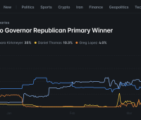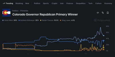 While no polls have been conducted in Colorado’s Republican gubernatorial primary yet, the race’s frontrunner, Victor Marx, pointed to his favorable odds on Polymarket on Monday as a reason he was invited to speak at an upcoming Conservative Political Action Committee (CPAC) event. As of 6 a.m. that morning, the prediction market gave him a 77% chance of winning the Republican nomination.