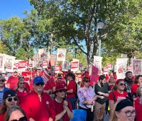 Teachers in Colorado Springs School District 11 took part in a one-day strike yesterday, picketing at 34 schools in the city’s third-largest school district and ending with a rally in Acacia Park. The strike comes in response to last year’s decision by the majority-conservative board not to renew the district’s longstanding contract with the teachers union, the Colorado Springs Education Association (CSEA), and in response to recent decisions by the board, including adoption of policies targeting transgender students and the decision to spend $500,000 on an outside marketing consultant.